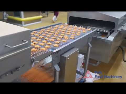 Mesin penggiling terowong menyalut produk dengan lapisan serbuk roti. Ia sesuai untuk serbuk yang mengalir bebas. Ia boleh digunakan untuk roti burger, jari ikan, kroket, cincin bawang, dll